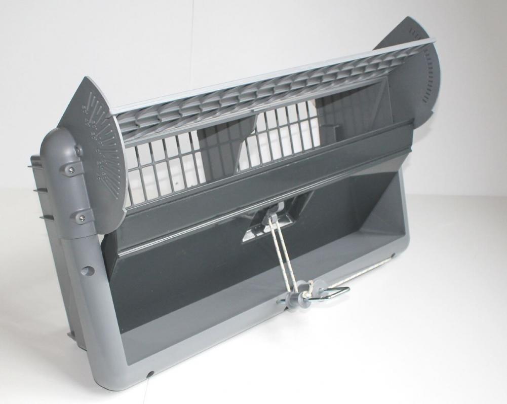 Das Wandventil AIV54 eignet sich für den Einsatz im Geflügel- wie auch im Schweinestall. Es ist ein Flanschventil, welches an der Innenwand befestigt wird. Jedes Ventil ist auf der Rückseite mit einem Kunststoffnetz ausgerüstet, welches Tiere am Eindringen hindert. Das AIV54 besteht aus robustem und formbeständigem Kunststoff. Die Ventilklappe ist vollständig isoliert. Durch die glatte Oberfläche ist es leicht zu reinigen, u. a. mit einem Hochdruckreiniger. Mit der Luftführungsklappe an der oberen Seite des Ventils lässt sich der Einströmwinkel der Zuluft für jeden Stall individuell einstellen.